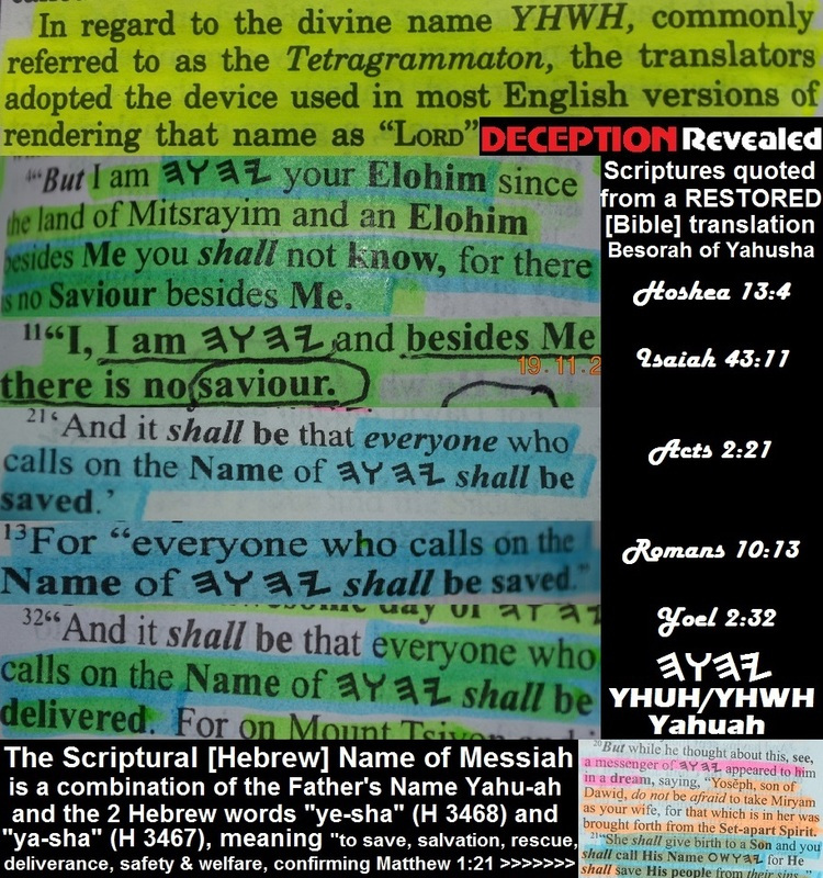 The SAME principle applies to the SET-APART NAMES of Father and Son! It has NEVER CHANGED or EVOLVED in the 21st century! It was TAMPERED with by man (Bible Translators) as can be seen through the images already shown above!